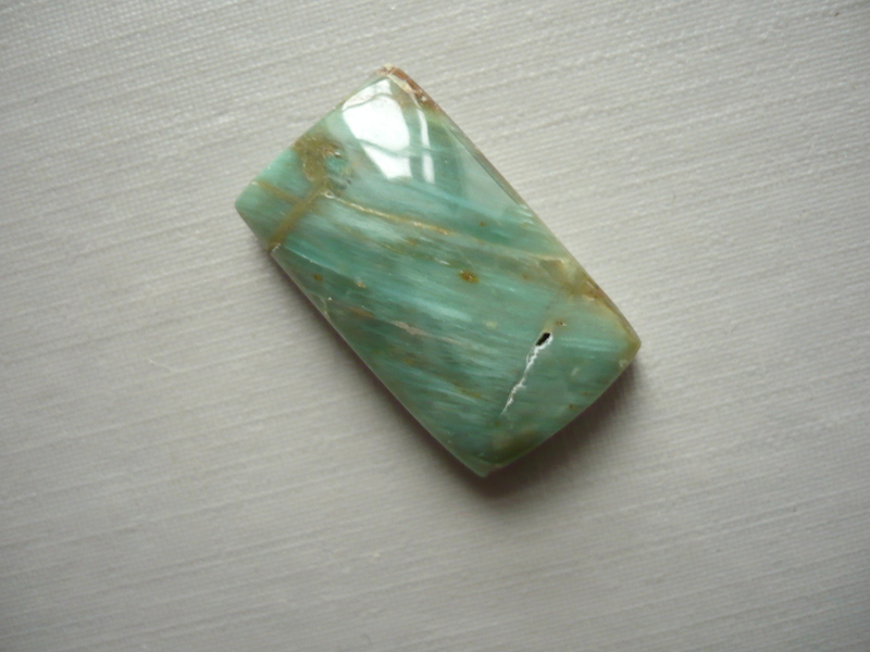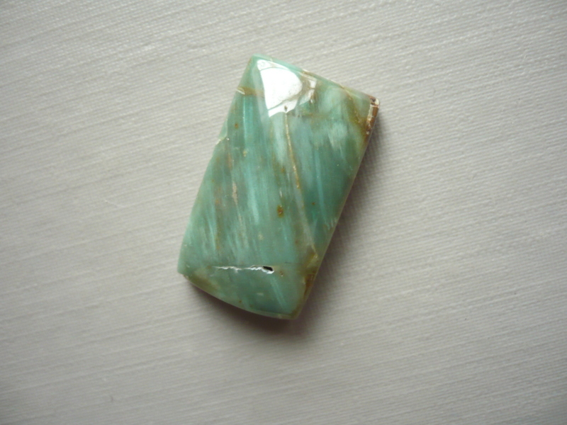 Kabošon - prasem (africký jadeit). Rozměry 22 x 13 x 7 mm. Vhodný pro cínování, wire-wrapping.. Původ Jižní Afrika.