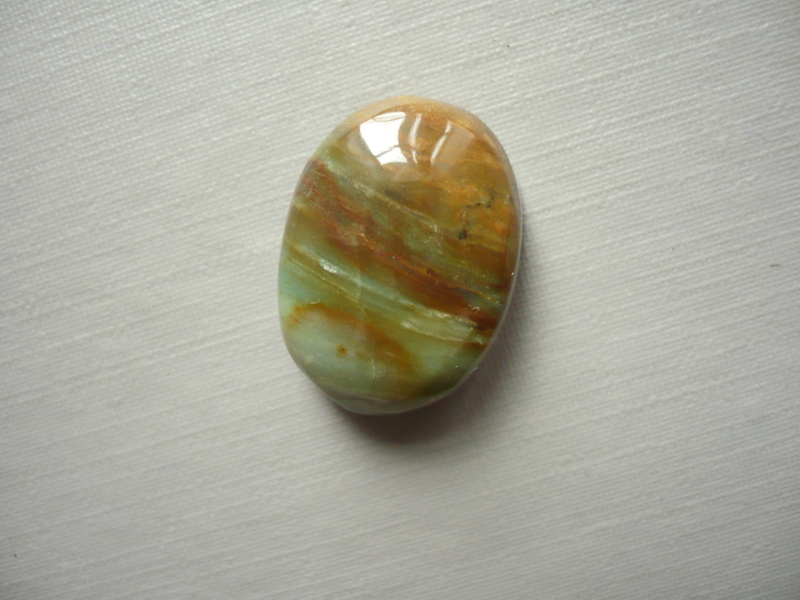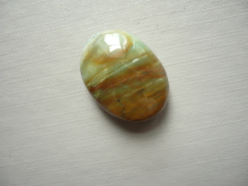 Kabošon - prasem (africký jadeit). Rozměry 20 x 15 x 7 mm. Vhodný pro cínování, wire-wrapping.. Původ Jižní Afrika.