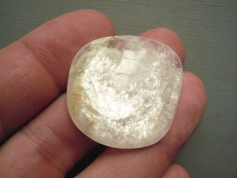 Tromlovaný kámen - apofilit zelený. Rozměry 31 x 31 x 8 mm. Původ Indie.