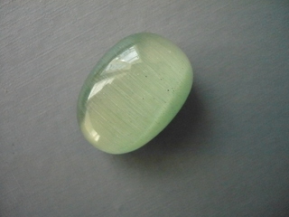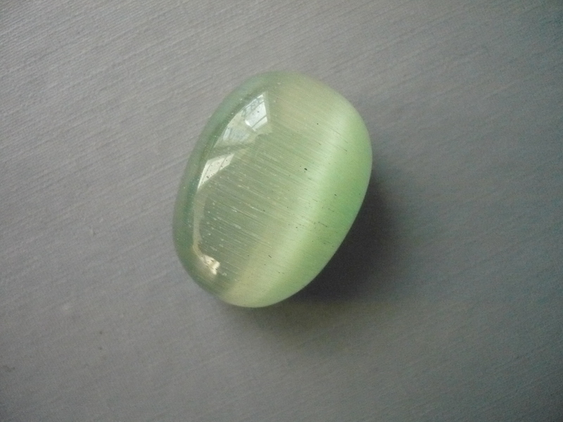 Tromlovaný kámen - kočičí oko (ulexit). Rozměr 27 x 19 x 16 mm. Tento kamínek je syntetický, ale velmi efektní.