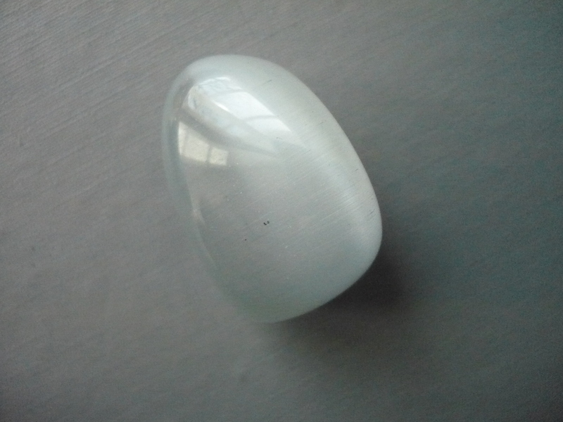 Tromlovaný kámen - kočičí oko (ulexit). Rozměr 29 x 19 x 18 mm. Tento kamínek je syntetický, ale velmi efektní.