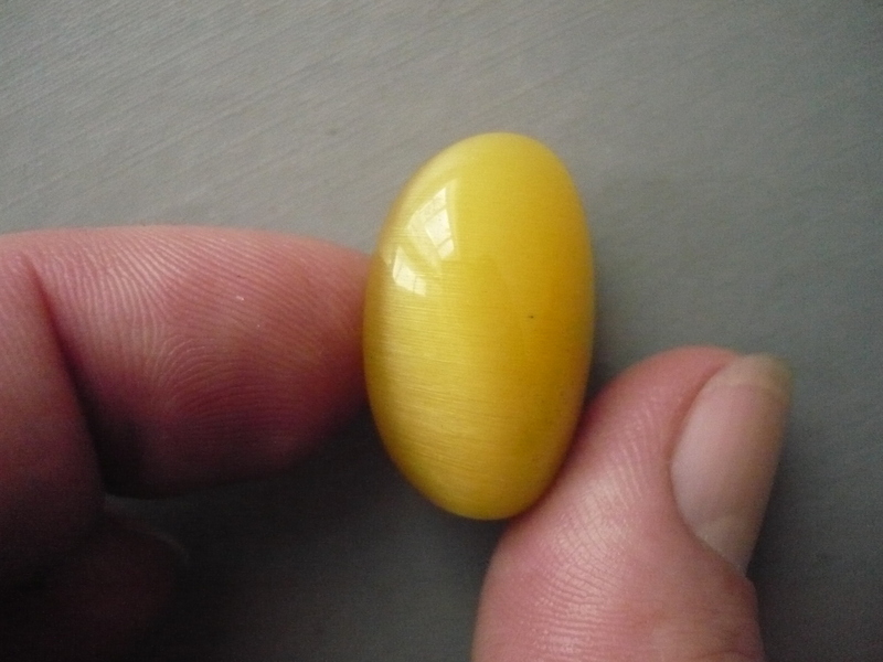 Tromlovaný kámen - kočičí oko (ulexit). Rozměr 27 x 21 x 15 mm. Tento kamínek je syntetický, ale velmi efektní.