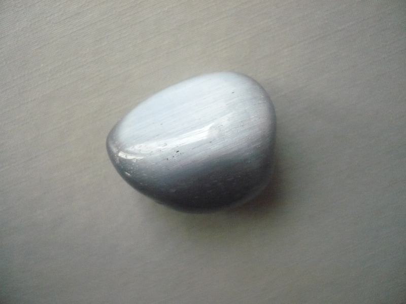 Tromlovaný kámen - kočičí oko (ulexit). Rozměr 27 x 19 x 17 mm. Tento kamínek je syntetický, ale velmi efektní.