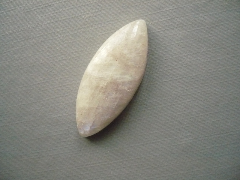 Kabošon měsíčního kamene, top kvalita. Rozměry 33 x 13 x 7 mm. Původ Indie. Vhodné pro cínování, obšívání... Ze spodní strany je plochý. Je mléčně bílý, poloprůhledný s výraznou modrou adularescencí. Jsou výběrové a moc pěkné.