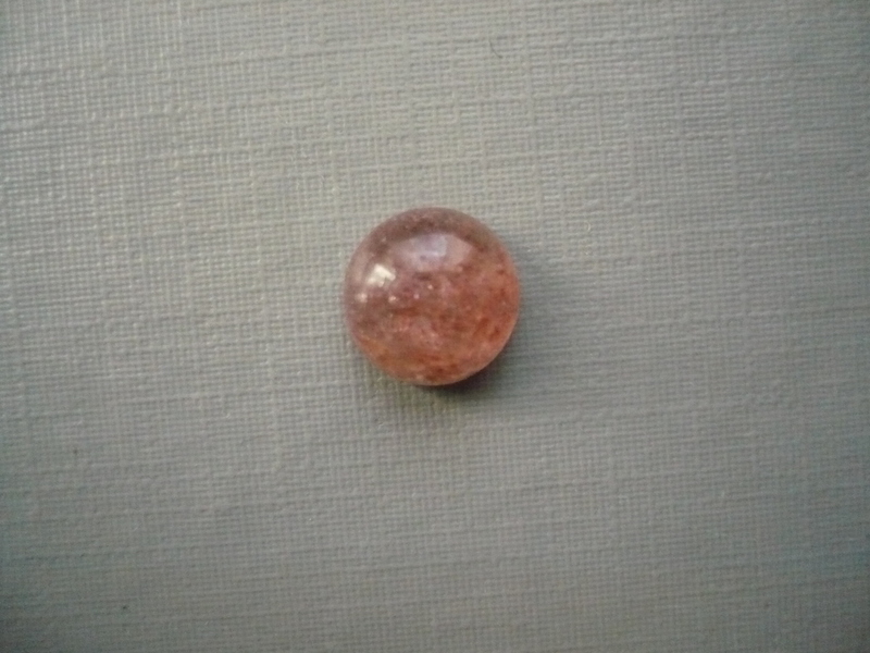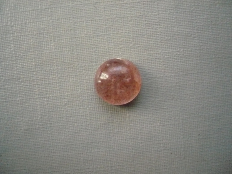 Kabošon - jahodový křemen. Rozměry 9 x 5 mm. Přírodní kámen se šupinkami příměsí, hematitu.. Vhodné pro cínování, obšívání... Původ Afrika.