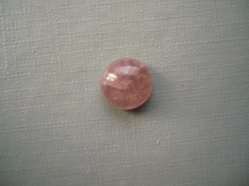 Kabošon - jahodový křemen. Rozměry 9 x 5 mm. Přírodní kámen se šupinkami příměsí, hematitu.. Vhodné pro cínování, obšívání... Původ Afrika.
