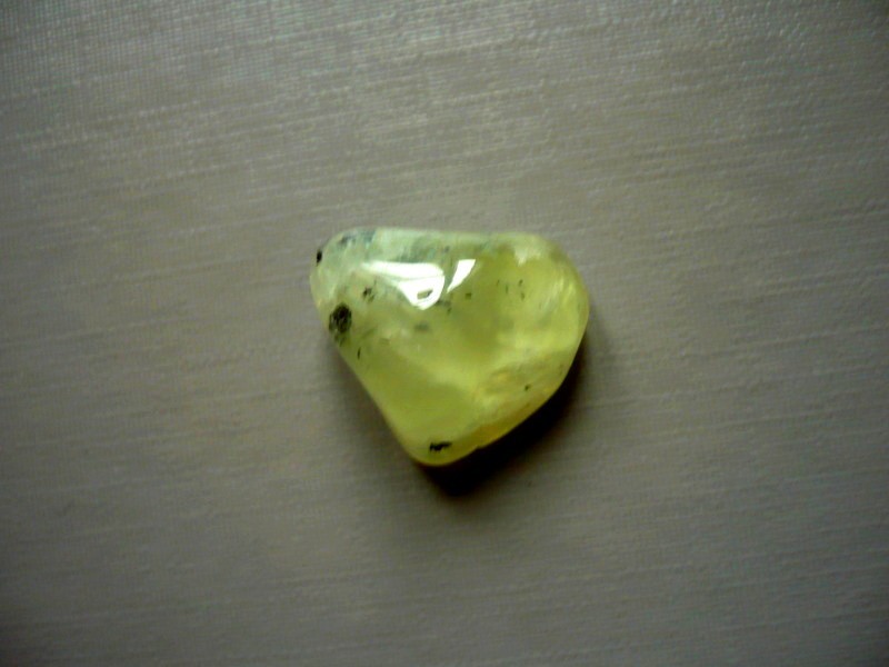 Tromlovaný kámen - prehnit s epidotem . Rozměry 16 x 15 x 10 mm. Původ Čína.