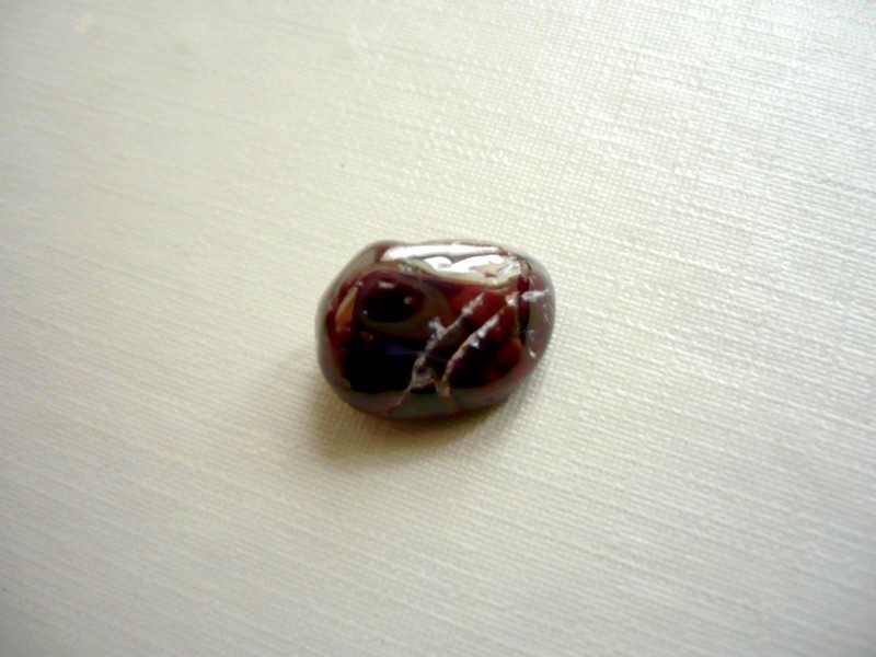 Rodolit - druh granátu, tromlovaný kámen broušený, leštěný. Rozměry 14 x 10 x 7 mm. Původ Tanzánie.