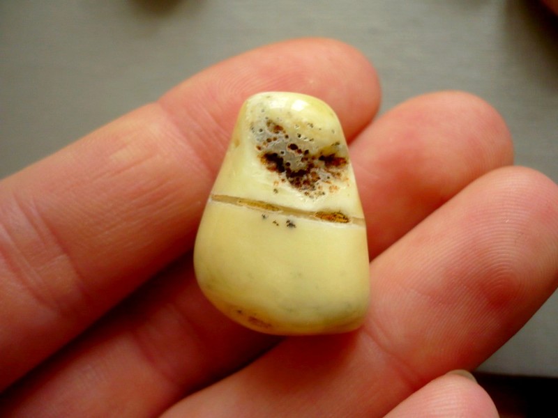 Tromlovaný kámen - žlutý opál. Rozměry 26 x 18 x 18 mm. Původ Tanzánie. V nabídce také zlomky žlutého opálu a srdíčka.