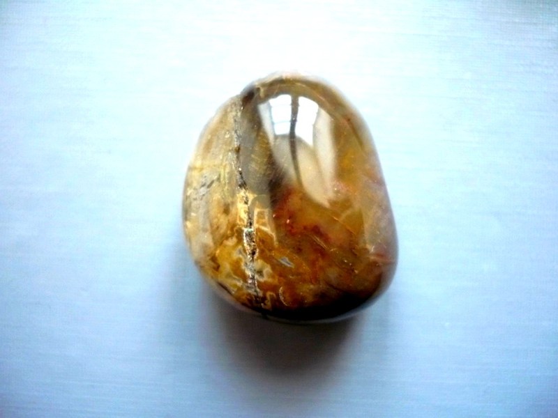Tromlovaný kámen - zkamenělé dřevo. Rozměry 28 x 22 x 18 mm. Původ Madagaskar. Praskliny patří k charakteru tohoto kamene.