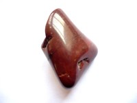 Tromlovaný kámen - červený opál. Rozměry 32 x 22 x 17 mm. Původ Sovensko. Obsahuje černé dendrity, je lehoučký. Obsahuje drobné praskliny.