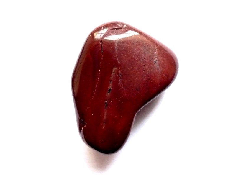 Tromlovaný kámen - červený opál. Rozměry 31 x 23 x 15 mm. Původ Sovensko. Obsahuje černé dendrity, je lehoučký. Obsahuje drobné praskliny.