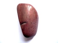 Tromlovaný kámen - červený opál. Rozměry 33 x 18 x 15 mm. Původ Sovensko. Obsahuje černé dendrity, je lehoučký. Obsahuje drobné praskliny.