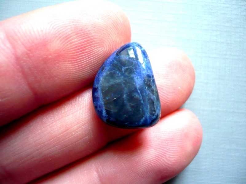 Tromlovaný kámen - sodalit. Rozměry 18 x 13 x 8 mm. Původ Brazílie. Jsou moc pěkné, temně modré.