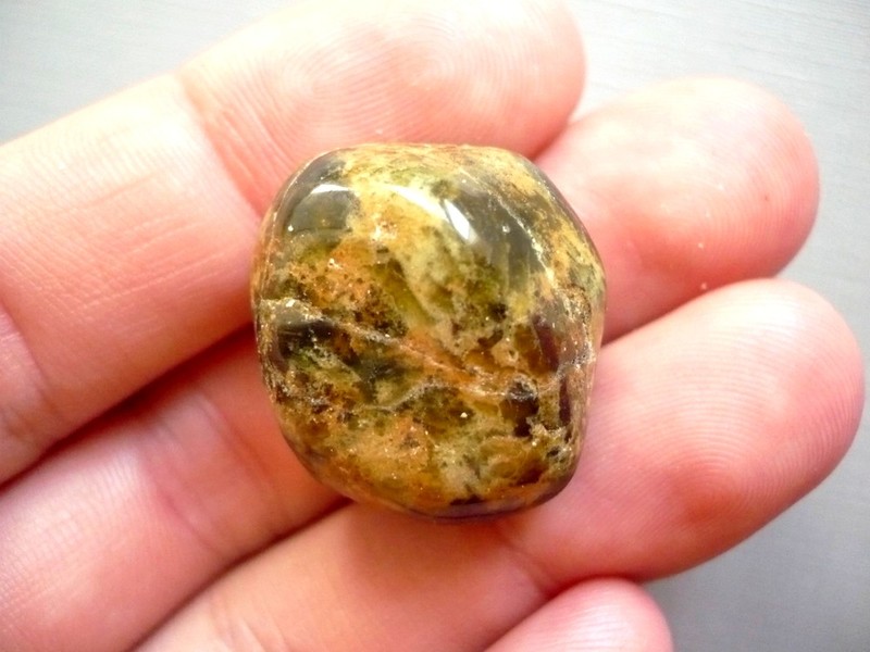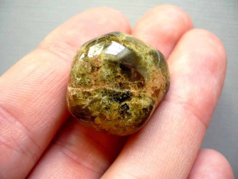 Zelený granát (hydrogrossulár) - tromlovaný kámen broušený, leštěný. Rozměry 25 x 23 x 19 mm. Původ Afrika. Granát - jde o velmi kvalitní kámen, velké tvrdosti (7) a vysokého lesku.
