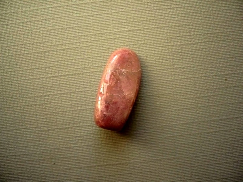 Tromlovaný kámen - rodonit. Rozměry 19 x 9 x 8 mm. Kupujete tento konkrétní kousek. Původ Brazílie.