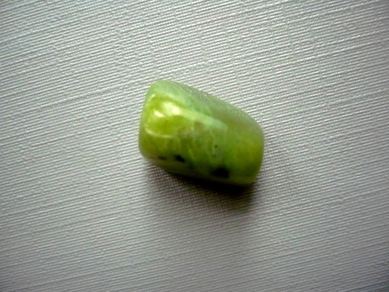 Tromlovaný kámen - jadeit. Rozměry 15 x 11 x 10 mm. Země původu - Kanada.