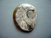 Amonit v matečné hornině - prvohorní fosílie, nevrtaný. Je leštěný svrchu, zespodu plochý, původ Maroko. Rozměry 31 x 27 x 5 mm. Vhodný do šperků, cínu, pro obšívání...