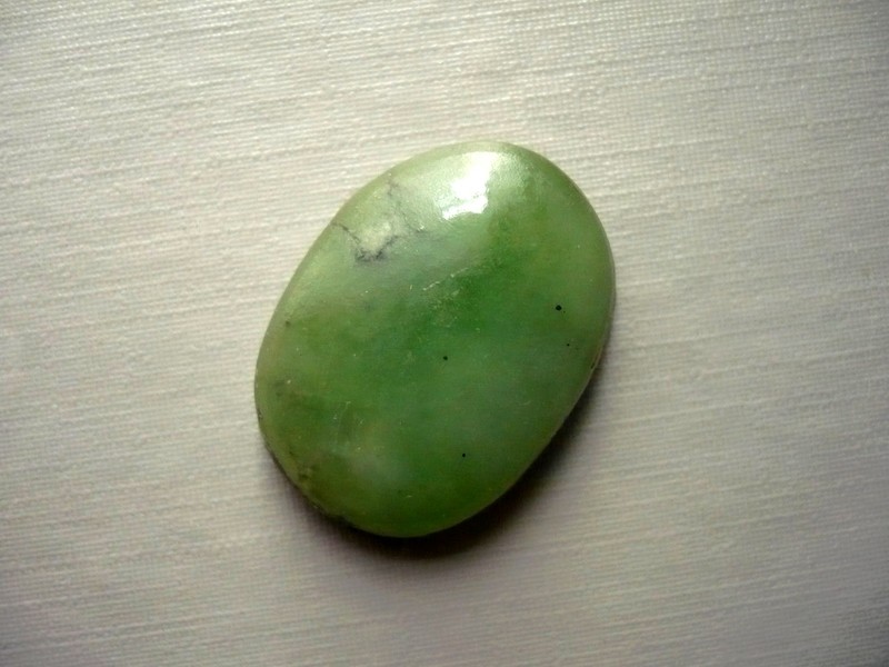 Kabošon - jadeit/nefrit. Původ Kanada. Rozměry 26 x 19 x 7 mm. Kupujete vyfocený kousek. Leštěné. Vhodné pro cínování, obšívání..