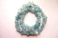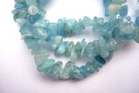 Minerální zlomky - akvamarín v délce 45 cm, navlečeno na šňůře. Každý zlomek má svou originální kresbu.