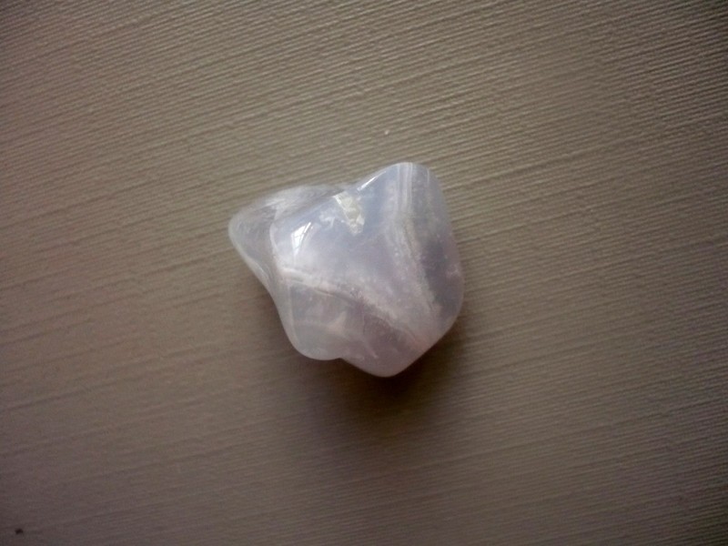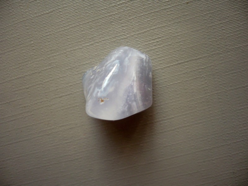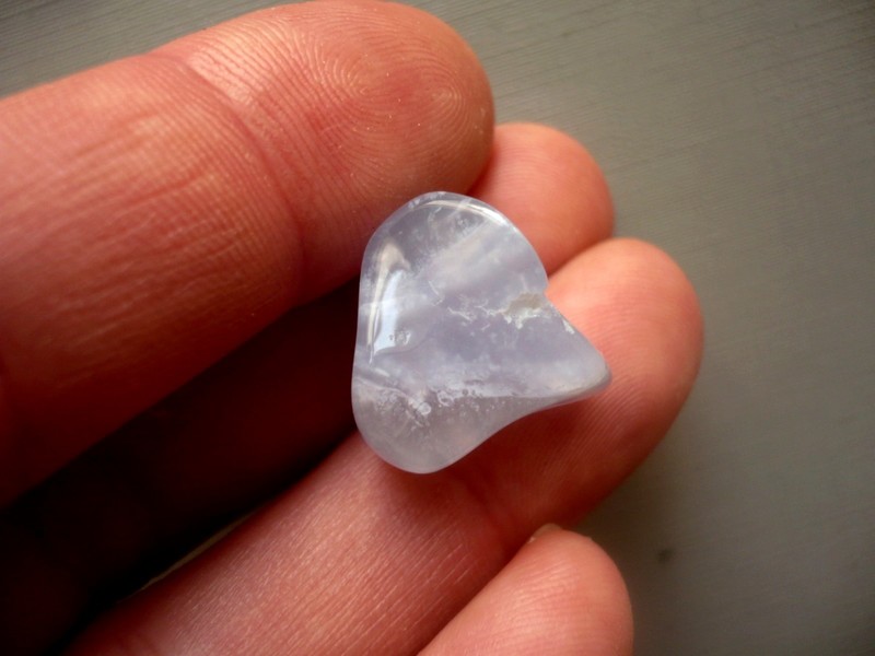 Tromlovaný kámen - chalcedon modrý. Rozměry 19 x 18 x 15 mm. Naleziště Malawi. Chalcedon - povzbuzuje optimismus a dobou vůli, stimuluje schopnost učení. Zahání strach, smutek a deprese.