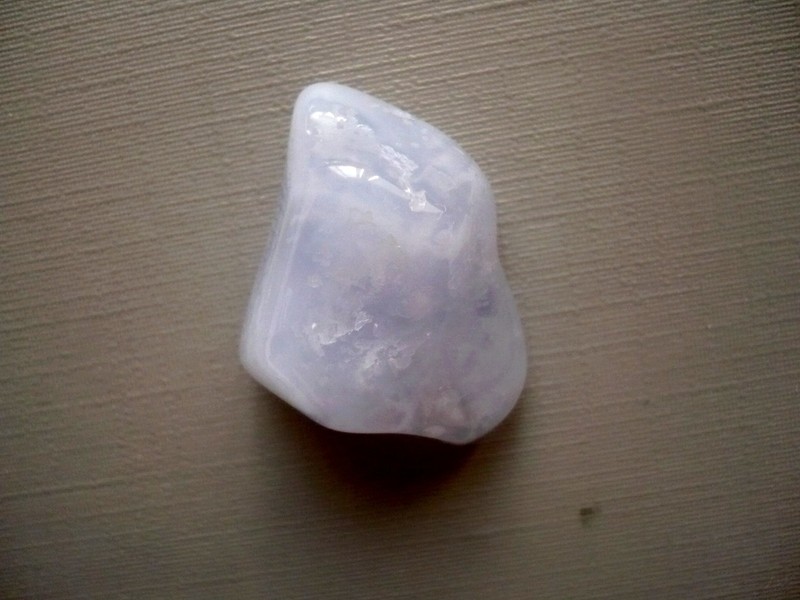 Tromlovaný kámen - chalcedon modrý. Rozměry 28 x 21 x 13 mm. Naleziště Malawi. Chalcedon - povzbuzuje optimismus a dobou vůli, stimuluje schopnost učení. Zahání strach, smutek a deprese.