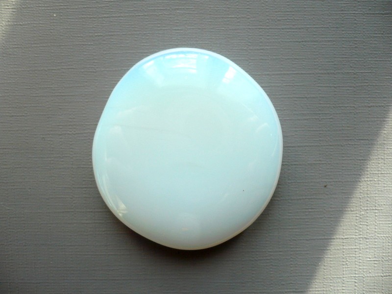 Tromlovaná placka - opalit. Rozměry 45 x 42 x 10 mm. Vhodný pro cínování, wire-wrapping.. Toto je synteticky vyrobený kámen, jde o sklo. V nabídce také troml. kameny a zlomky opalitu, vrtané valounky.