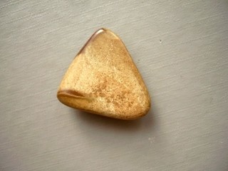 Tromlovaný kámen - porcelanit. Rozměry 23 x 22 x 7 mm. Původ ČR - Medlovický lom.