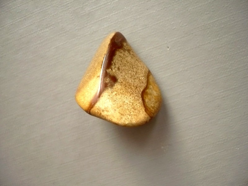 Tromlovaný kámen - porcelanit. Rozměry 26 x 20 x 12 mm. Původ ČR - Medlovický lom.
