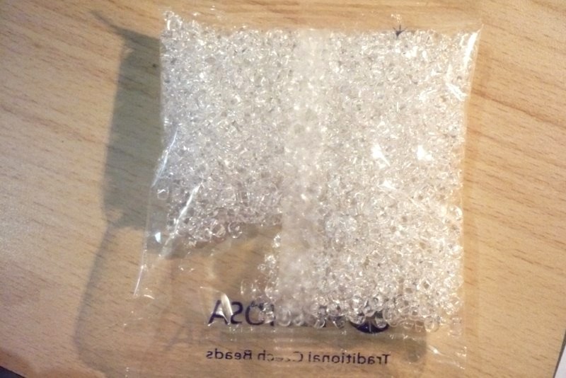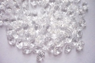 Rokajlové korálky české výroby - dvoudírkový rokajl = twin Preciosa Jablonex. Rozměry 5 x 3,5 x 2,5 mm. Barva čirá. Cena za 10 gramů (cca 180 ks). T16