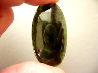 Nevrtaný tvar - kabošon ze serpentinu, top kvalita! Rozměry 49 x 26 x 6 mm. Vhodné pro cínování, obšívání... Původ Afrika.