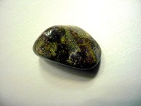 Tromlovaný kámen - epidot s červeným jaspisem. Rozměry 29 x 18 x 15 mm. Také se mu říká Dračí krev. Původ Jižní Afrika.