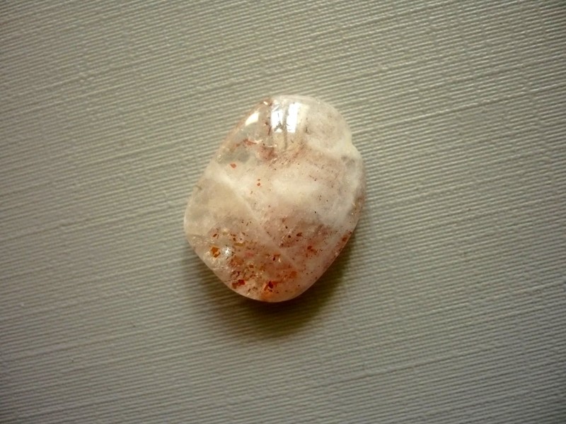 Tromlovaný kámen - sluneční kámen (heliolit). Rozměry 20 x 15 x 6 mm. Naleziště Tanzánie. Sluneční kámen - napomáhá pozitivnímu myšlení, dodává sebedůvěru, působí proti depresím a dodává tělu fyzickou energii.