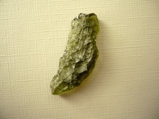 Šperkový kámen - vltavín (moldavit). Váha 2,22 g, rozměry 32 x 13 x 5 mm. Původ Jižní Čechy, různé lokality. Vltavíny - používaly se odedávna jako amulety a talismany, nosily se pro štěstí a plodnost.
