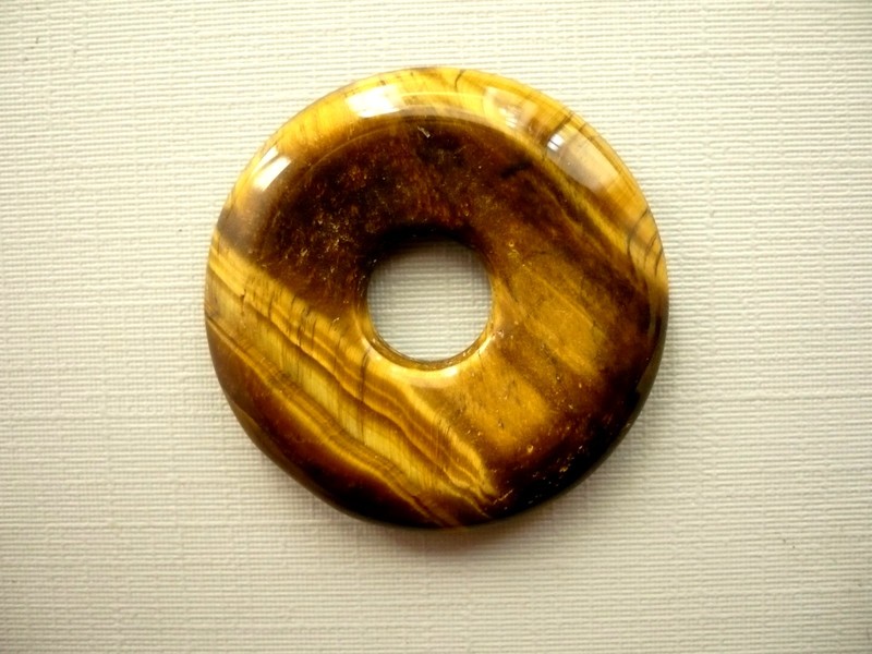 Tygří oko - opracovaný donut vhodný k další tvorbě i jen k zavěšení. Průměr 30 mm, výška 5 mm. Každý má originální kresbu, kupujete vyfocený kus. V nabídce také závěsy na tyto donuty - jednoduché a spirálové.