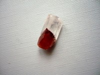 Špice z křišťálu s hematitem. Rozměry 19 x 9 x 8 mm. Původ Brazílie.