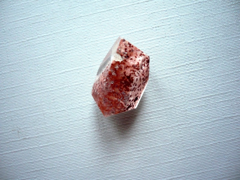 Špice z křišťálu s hematitem. Rozměry 18 x 11 x 11 mm. Původ Brazílie.