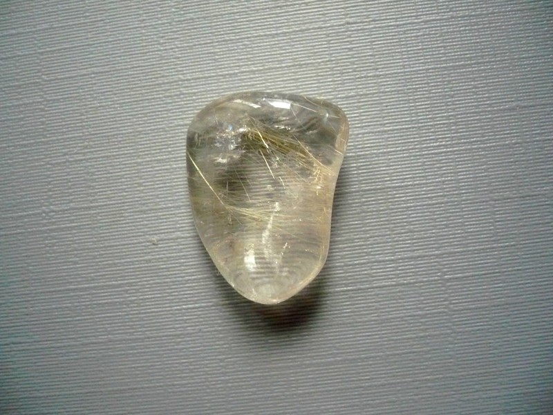 Tromlovaný kámen - sagenit - rutil v křišťálu. Rozměry 21 x 17 x 8 mm. Původ Brazílie. Sagenit je velice silný energetický kámen, který obnovuje v naší duši světlo a čistotu. Tiší všechny bolesti a nemoci.