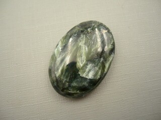 Luxusní kabošon serafinitu. Rozměry 30 x 20 x 6 mm. Původ Rusko. Vhodné pro cínování, obšívání... Ze spodní strany je plochý.