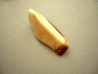 Tromlovaný kámen - limnokvarcit. Rozměry 34 x 14 x 11 mm. Původ Slovensko. Je tvořen opály a křemeny, hnědé odstíny mají díky železu.