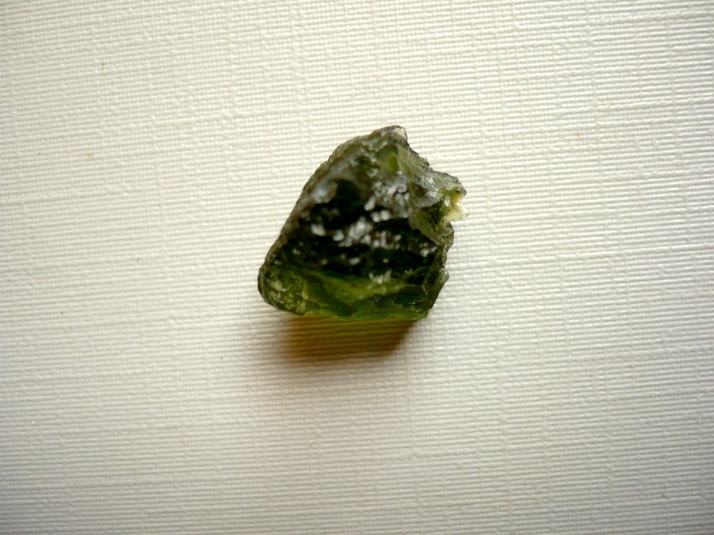 Šperkový kámen - vltavín (moldavit). Váha 1,79 g, rozměry 15 x 14 x 13 mm. Původ Jižní Čechy, různé lokality. Vltavíny - používaly se odedávna jako amulety a talismany, nosily se pro štěstí a plodnost.