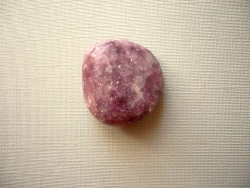 Tromlovaný kámen - lepidolit. Rozměry 21 x 20 x 11 mm. Původ Jižní Afrika.