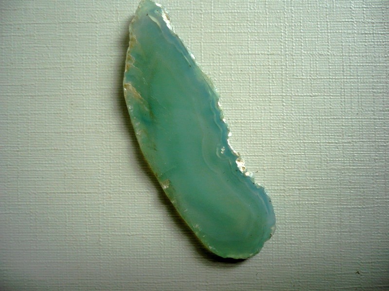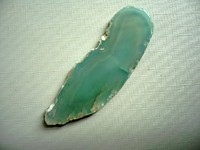 Achátový plátek modrozelený. Rozměry 61 x 20 x 4 mm. Každý kousek má svou originální kresbu, barva je zelená, jsou dobarvované. Kupujete vyfocený kus! Původ Brazílie.