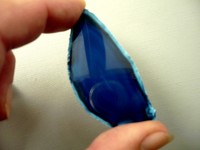 Achátový plátek modrý. Rozměry 63 x 31 x 5 mm. Každý kousek má svou originální kresbu. Kupujete vyfocený kus! Tyto jsou dobarvované.