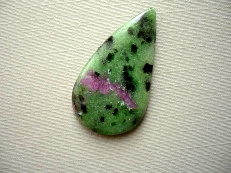Kabošon rubínu v zoisitu, top kvalita. Rozměry 38 x 21 x 5 mm. Vhodné pro cínování, obšívání... Ze spodní strany je plochý. Cena za tento konkrétní kus. Původ Afrika.