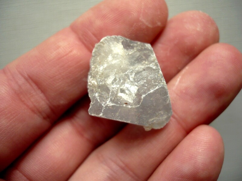 Krystal - celestýn. Původ Madagaskar. Rozměry 27 x 20 x 17 mm. Tento minerál se velmi špatně opracovává a je velmi vzácný. Má modrošedou kouřovou barvu.