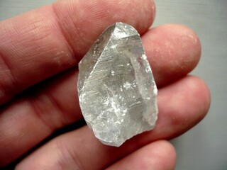 Krystal - celestýn. Původ Madagaskar. Rozměry 31 x 21 x 15 mm. Tento minerál se velmi špatně opracovává a je velmi vzácný. Má modrošedou kouřovou barvu.