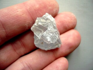 Krystal - celestýn. Původ Madagaskar. Rozměry 25 x 18 x 18 mm. Tento minerál se velmi špatně opracovává a je velmi vzácný. Má modrošedou kouřovou barvu.