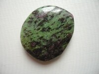 Tromlovaná placka - rubín zoisit. Rozměry 41 x 35 x 10 mm. Kupujete vyfocený kousek. Leštěné. Vhodné pro cínování, obšívání.. Původ Brazílie.