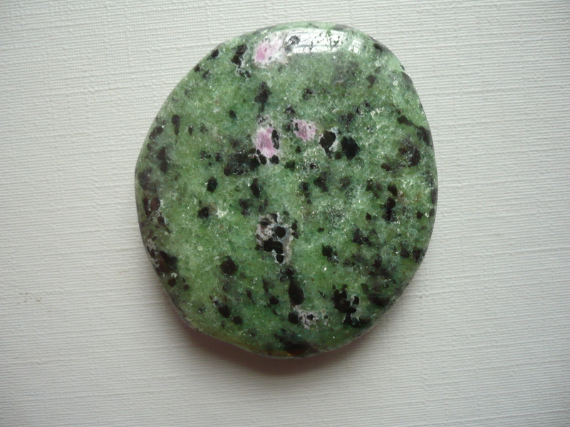 Tromlovaná placka - rubín zoisit. Rozměry 42 x 38 x 10 mm. Kupujete vyfocený kousek. Leštěné. Vhodné pro cínování, obšívání.. Původ Brazílie.
